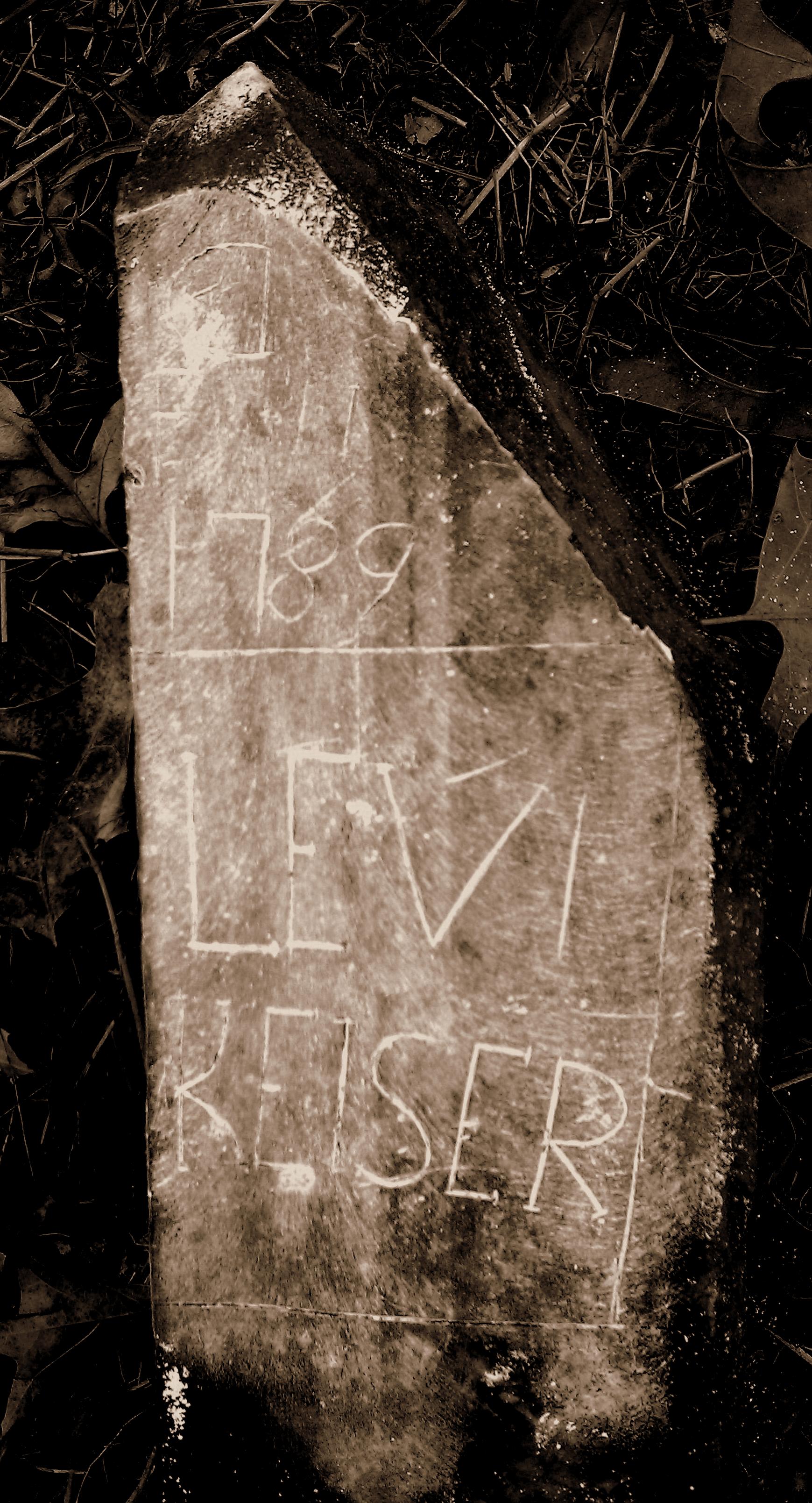 After learning of the amazing life journey of Thomas Dove Keiser/Keizur, I decided to revisit the old unreadable stone with an open mind to variations in naming. Amazed at what I now see, I’m almost certain the stone marks the resting place of T.D.’s and little Levi’s father.