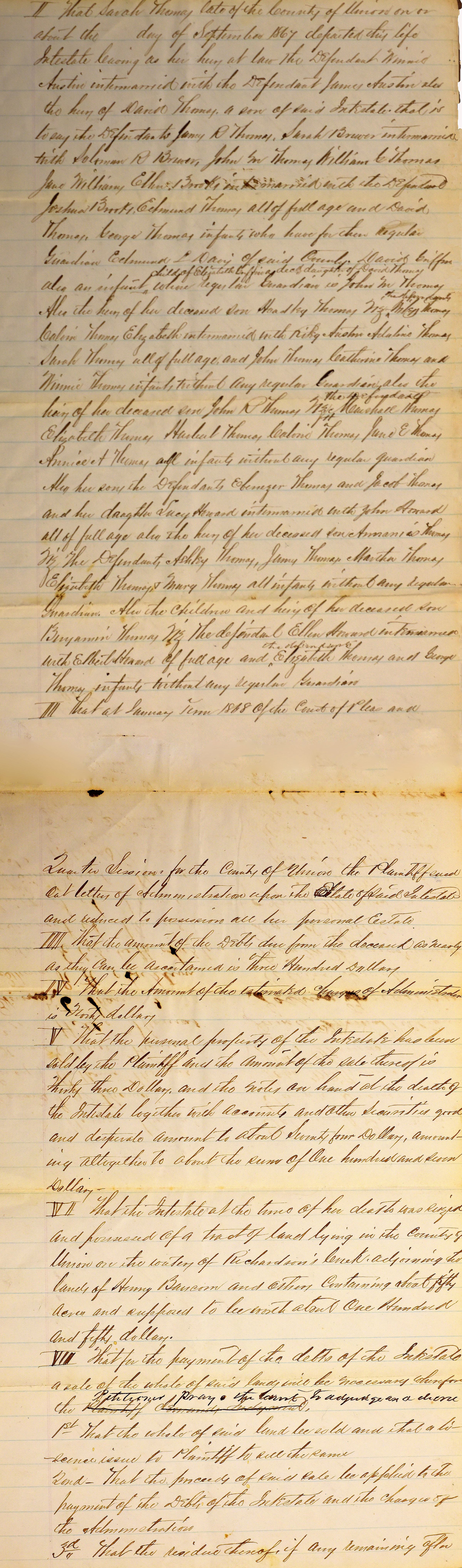 My GGG-Grandfather Ananias Thomas was born in 1779 and lived a long and prosperous life near the banks of Richardson Creek in upper Union County NC. He married a person named Sarah whose maiden escapes record. Both Ananias and his wife outlived most of their children.