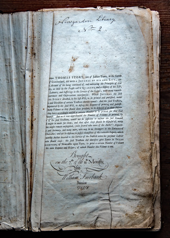 Script at the top says New Garden 2. Was this the second book in the library or was this from the second New Garden Meeting located in I believe Pennsylvania. Also note it was bought in 1737 by William Fairbanke