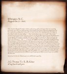 It appears Jesse Green Thomas was among those who fell in what later grew to become an epidemic spread of Yellow Fever. In his letters he wrote mostly of care given in hospital as well as of his appreciation of good treatment while recovering at the home of an unnamed local resident. And written with greater urgency and a growing sense of despair, the last letter penned in early August foretells of Jesse’s ultimate demise. According to cemetery records we know that “Jesse (CSA) Thomas” is buried in a specially designated section at Oakdale Cemetery. His death date is listed as Oct 19, 1862. In this, Wilmington’s largest and most historically prestigious cemetery, there is a grassy hill scattered with but a few marked graves. Known now as the 1862 Burial Site of the Yellow Fever Victims, it is said that approximately 400 bodies to be interred were dragged from town, burned, and buried there in hopes of halting the spread of disease. At the front of this hallowed ground is a simple marker listing all of those believed to have been buried in the special plot. Among those listed is Jesse Green Thomas who lies at rest in row 4, grave 22. No longer is he away from home and pleading for the attention of family. No longer is he isolated by a lack of friendship. Jesse Green Thomas is at peace.