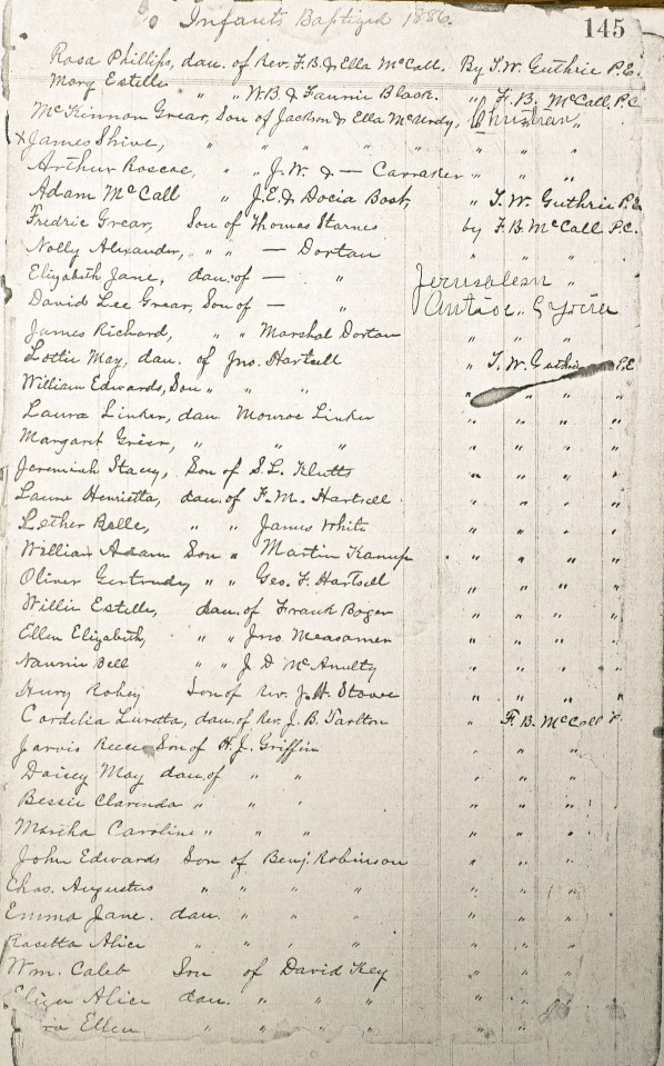 Likely Infant Baptisms at Bethel Methodist