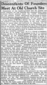 Another “hunch” in the manner of researching should be followed thorough – as to whether the church was functioning under the name of St. Peter’s before division of the North Carolina Synod, and it became a part of the Tennessee Synod. At this period of adjustment caused there to have come a lack of regular service by a pastor and when reorganized, took the name Flat Rock.