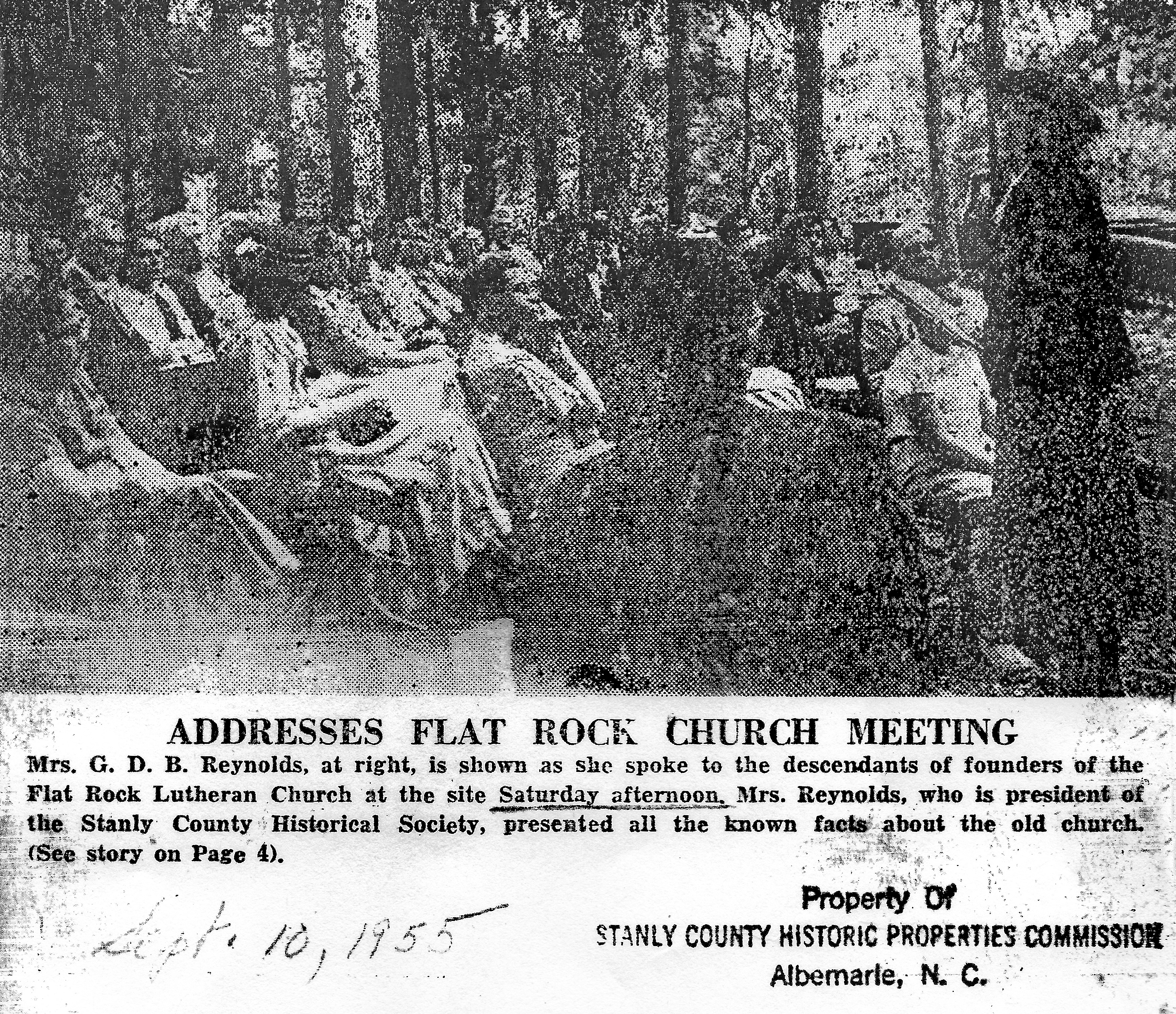In late summer of 1955, a group of descendant families and historians gathered at the site of Flat Rock Lutheran Church. Per a newspaper article dated 10 Sep 1955, Mrs. G. D. B. Reynolds, who was then president of the Stanly County Historical Society, spoke at the event about historical data that had been collected to date. Judge O. O. Efird from Winston-Salem spoke about the Efird family who were among the church’s founders. Others also presented and a committee was formed in hopes of obtaining a historical marker. At some point I plan to visit North Carolina State Archives to pull the original marker request. Within the church file housed in Stanly County is the following copy of the article as well as what I believe to be Mrs. Reynold’s personal handwritten speaking notes. It’s from that source where I learned that Flat Rock Lutheran may have a history reaching further back than most may realize.