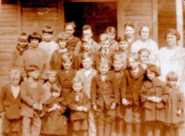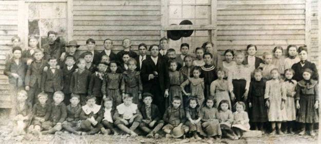 Often, I find myself wishing to talk once more to my deceased ancestors about things I have noticed in photographs and other records from the past. For example, in the above photo, I see a number 8 in one of the panes of glass in the window to the right.  And if you look closely, there’s also a number 325 in one of the panes just above the heads of those standing in the back row. What’s that about?  Was a child doing their homework on the dust covered glass? And, why is there a board nailed across one of the windows? It surely isn’t strategically placed there to hold hats.  Was it put there to protect newly installed glass? …maybe before there was no glass in the window?  I also like what the clapboard siding is telling me.  It seems nice and straight with no warps or signs of wearing.  Is it new wood? Is  the class of students standing in front of a relatively new schoolhouse?