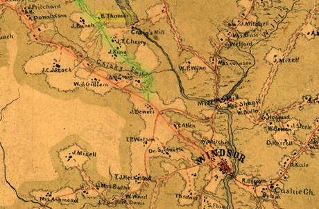 The bridge and communities are located on a wonderfully illustrated map created by the Confederate forces during the war. And to my amazement, the present-day Republican Road follows the same path today as was taken in 1863 when the map was created. Facts like that are vitally important when comparing ancient records to what we see today. And in addition, the old Confederate map locates all the landowners and where they lived. More on that map later.