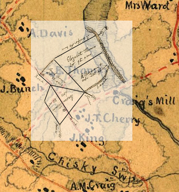 A few years ago, I wrote a post about these things as related to my own research …telling of curious tracts of land and the numerous locations where I believe my Thomas family possibly lived. Here is a map I altered showing the areas I was studying:
