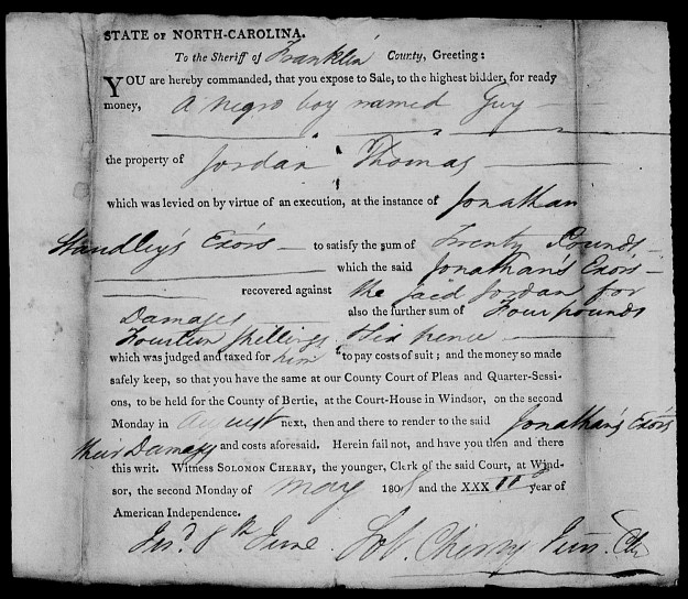But then, at this point, we can begin to trace other members of family, and even those who are not, though Jordan becomes lost in an almost vacuum of nothingness.  One ray of hope some have followed is believing that Josiah’s son above is a Jordan Thomas who died earlier in Franklin County NC.  Though Josiah’s son seems to vanish, the dates simply do not match though for others out there chasing this fellow who served as Sheriff for Franklin County, I offer the arousing bit of record below.  Again, to be clear, this is the record for a Jordan Thomas, though not the son of Josiah of Bertie County.