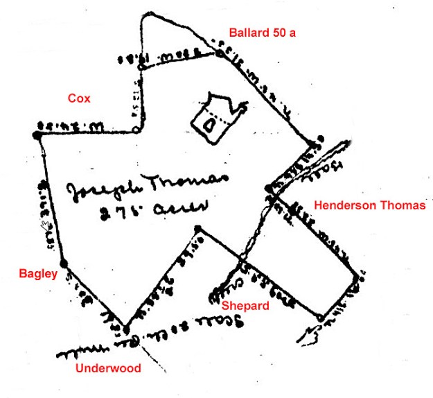 Red shaded tractsJoseph Thomas lands