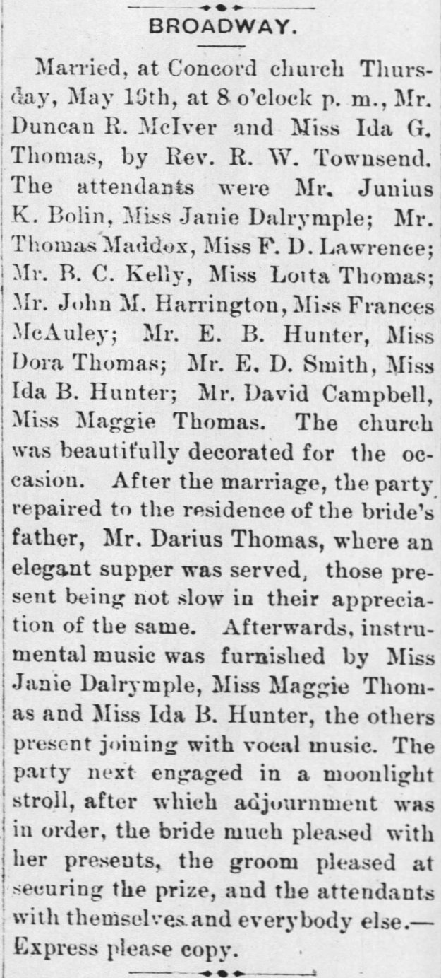 Founding this little church must have been a high-water mark in the life of Darius Thomas and yet, he must have been equally proud in hosting the 1889 marriage of his daughter Ida G. Thomas (Jonesboro Leader, 29 May 1889).