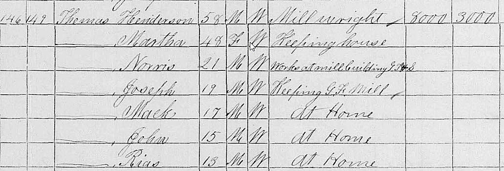 Looking at the 1870 census, it appears Henderson may have worked two mills in two different counties as he was enumerated in both Moore and Wake Counties: